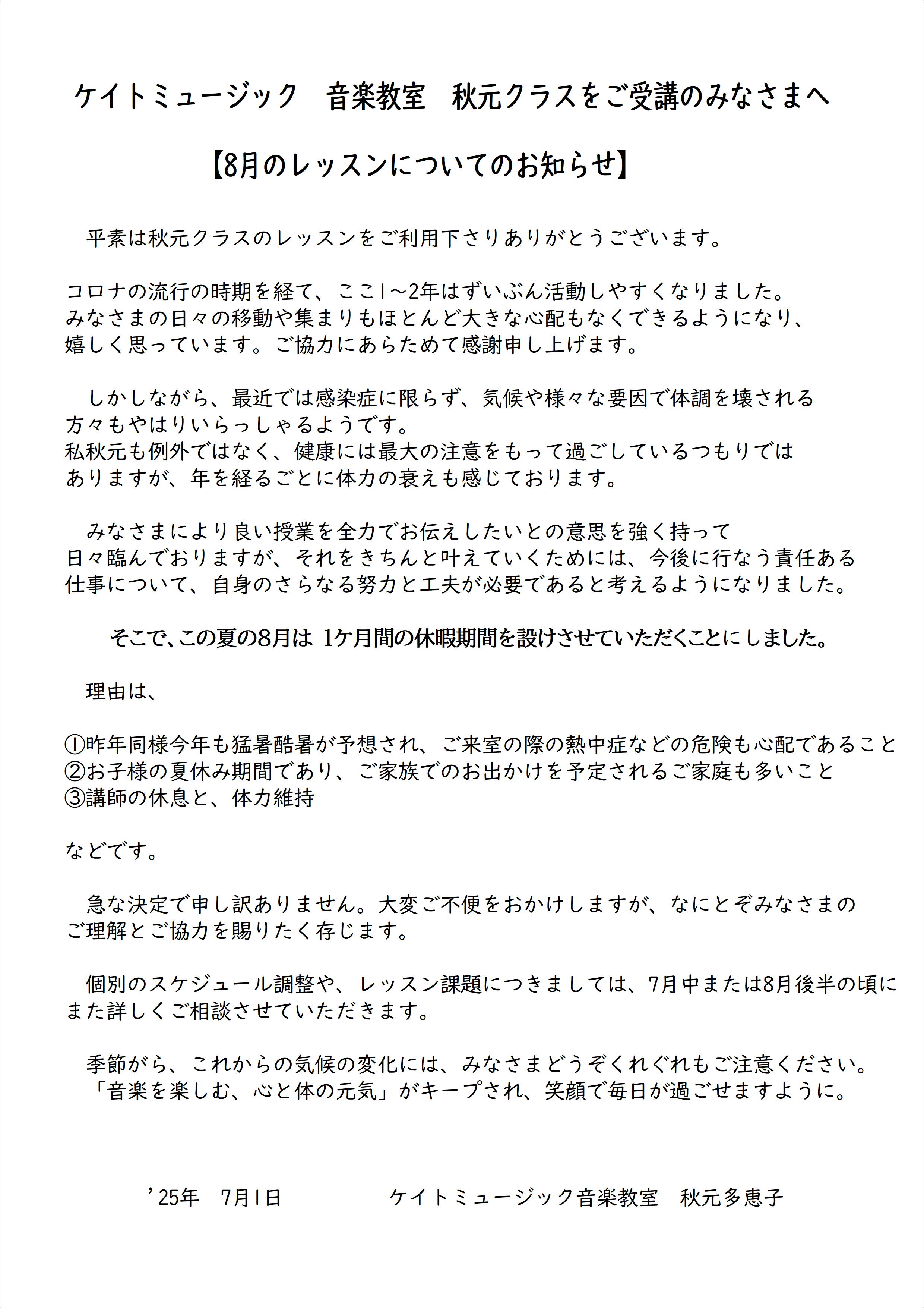 2025年も引き続きkatemusicとしては今までの感染対策を厳守しつつ、レッスンを継続して参りまたいと考えております。
